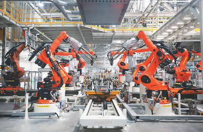 圖為在安徽合肥拍攝的大眾安徽模塊化電驅(qū)動(dòng)平臺工廠車身車間一角。