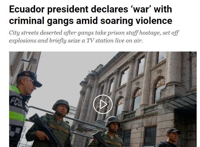 中新網(wǎng)1月11日電 綜合外媒報道,厄瓜多爾總統(tǒng)諾沃亞當?shù)貢r間10日宣布,該國正處于“戰(zhàn)爭狀態(tài)”。