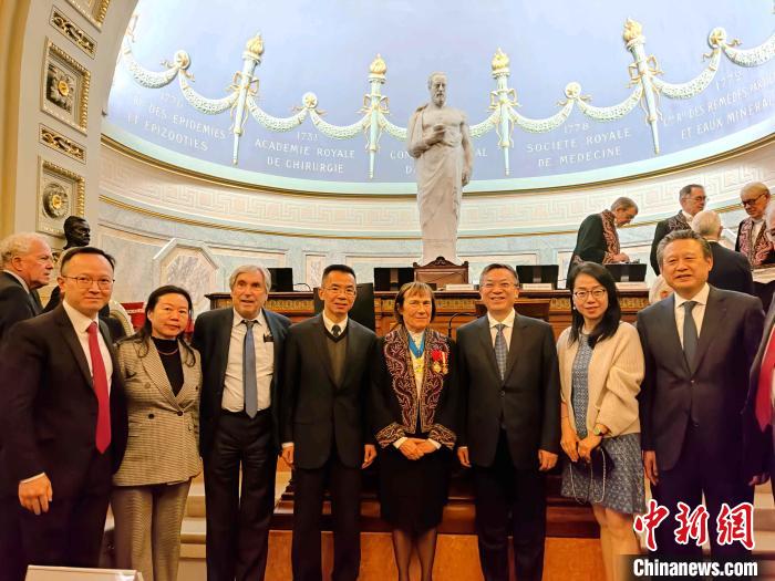 中新網(wǎng)巴黎1月10日電 法國國家醫(yī)學(xué)科學(xué)院1月9日舉行新年“開幕儀典”,見證中國專家被授予外籍通訊院士證書及勛章。中國駐法國大使盧沙野出席。