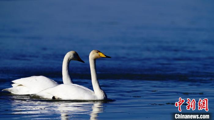 資料圖:天鵝在青海省海西州巴音河上游弋。 巴圖納生 攝