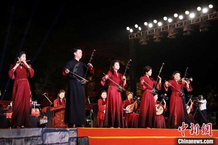 當?shù)貢r間1月13日晚,“中柬人文交流年”啟動儀式在柬埔寨暹粒舉行。圖為中國藝術(shù)家現(xiàn)場演奏。 中新社發(fā) 黎海月 攝