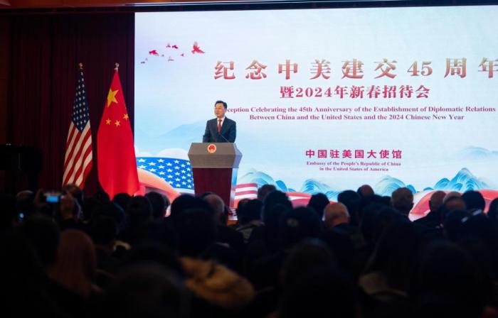 當(dāng)?shù)貢r(shí)間1月16日晚,中國(guó)駐美國(guó)使館隆重舉辦紀(jì)念中美建交45周年暨新春招待會(huì)。謝鋒大使出席并發(fā)表致辭。
