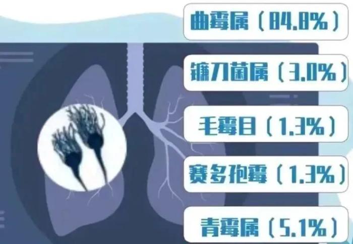 一項發(fā)表在《協(xié)和醫(yī)學(xué)雜志》上的我國霉菌感染流行病學(xué)分析的多中心回顧性研究顯示,以曲霉屬引起的感染占比最高為84.8%,其次是鐮刀菌屬、毛霉目和賽多孢霉等霉菌造成的感染,在霉菌引起的常見感染性疾病中以下呼吸道、耳部、眼部和皮膚感染較多見。