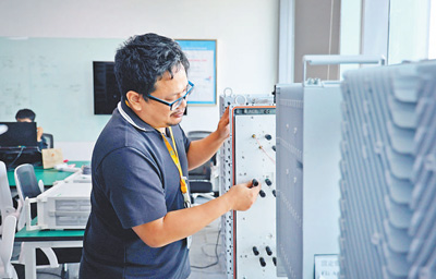 在泰國最大移動運營商AIS和中興(泰國)通信公司聯(lián)合創(chuàng)建的AIS—ZTE聯(lián)合創(chuàng)新中心內(nèi),泰國工作人員在對通信設(shè)備進行檢修調(diào)試。