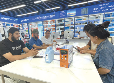 最近,埃馬紐埃爾又開始關(guān)注新能源產(chǎn)品?!翱溌∫恍┑胤酱嬖陔娏Χ倘?、供電不穩(wěn)的問題,很多當(dāng)?shù)厝讼M夷茉谥袊业胶线m的產(chǎn)品?!睘榇耍涯繕?biāo)瞄準(zhǔn)了義烏國際商貿(mào)城的新能源產(chǎn)品市場,尋找到一些適合喀麥隆的光伏設(shè)備?!爸袊男履茉串a(chǎn)品性能可靠、性價比高,產(chǎn)品品類覆蓋領(lǐng)域廣泛?!卑qR紐埃爾表示,大到醫(yī)療機構(gòu),小到禽畜養(yǎng)殖場,中國光伏設(shè)備供應(yīng)的電力有助于滿足當(dāng)?shù)孛癖娚a(chǎn)生活的用電需求。