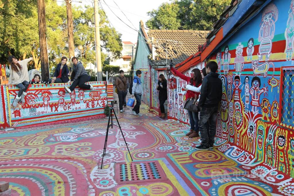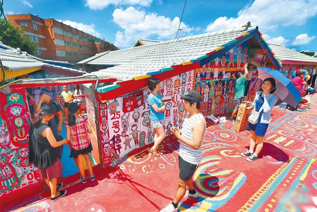 五彩繽紛、充滿童趣的畫風讓老舊眷村增添了生機,每逢節(jié)假日,大量民眾前來參觀打卡。圖片來源:中時新聞網