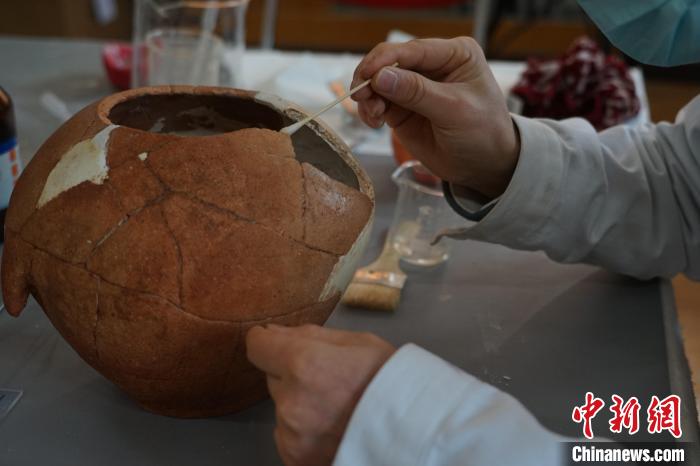 圖為正在被修復的陶器。 中新網(wǎng)記者李江寧 攝