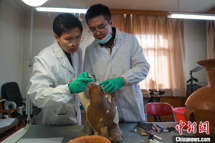 中新網(wǎng)西寧1月24日電 題:探訪喇家遺址受損文物修復現(xiàn)場:古老陶器重煥新生