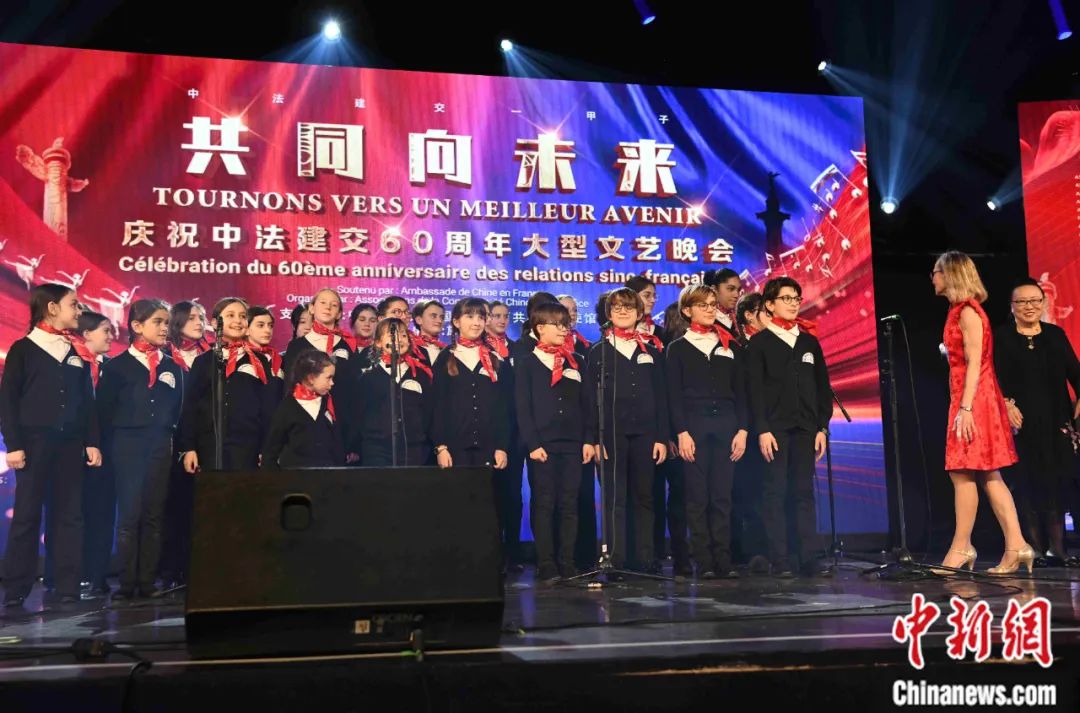 當(dāng)?shù)貢r(shí)間2024年1月16日晚,以“共同向未來(lái)”為題的慶祝中法建交60周年大型文藝晚會(huì)在巴黎舉辦。圖為法國(guó)寶利聲童聲合唱團(tuán)演唱歌曲。李洋 攝