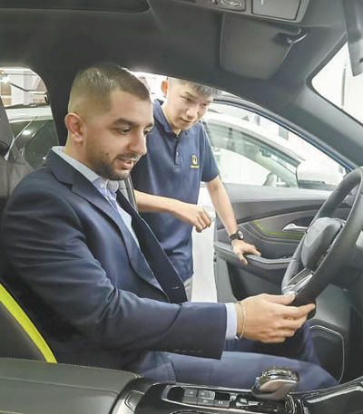 埃及首都開(kāi)羅,熱鬧繁華的穆罕迪森區(qū),阿拉伯國(guó)家聯(lián)盟大街上車水馬龍。走進(jìn)一家汽車展銷店,一眾知名品牌汽車中,來(lái)自中國(guó)的新能源汽車格外引人注目。
