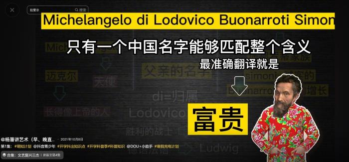 楊藩質(zhì)疑董董講解米開朗琪羅時(shí)抄襲自己的視頻文案。 截圖自短視頻平臺(tái)。