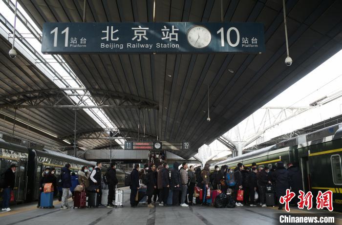 在鐵路北京站,旅客有序乘坐1461次列車(chē)前往自己目的地。中新網(wǎng)記者 殷立勤 攝