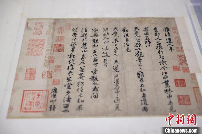 圖為展出的黃庭堅《惟清道人帖》真跡。中新網記者 駱云飛攝