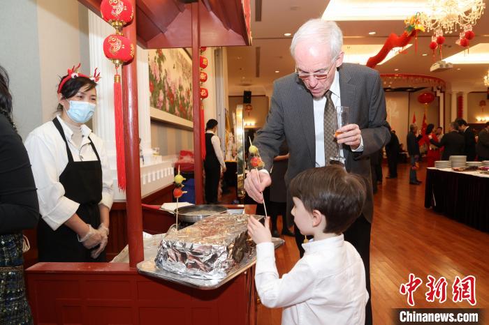 當(dāng)?shù)貢r(shí)間2月1日晚,加拿大首都渥太華,中國駐加拿大大使館舉行2024年春節(jié)招待會(huì)。圖為現(xiàn)場(chǎng)制作的中國風(fēng)味小吃冰糖葫蘆吸引來賓品嘗。中新網(wǎng)記者 余瑞冬 攝