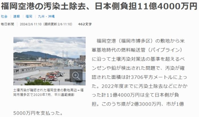 據(jù)報(bào)道,福岡機(jī)場所在地曾為美軍基地,1972年返還給日方,污染區(qū)域基本都是當(dāng)年美軍基地的燃料輸送管沿線。