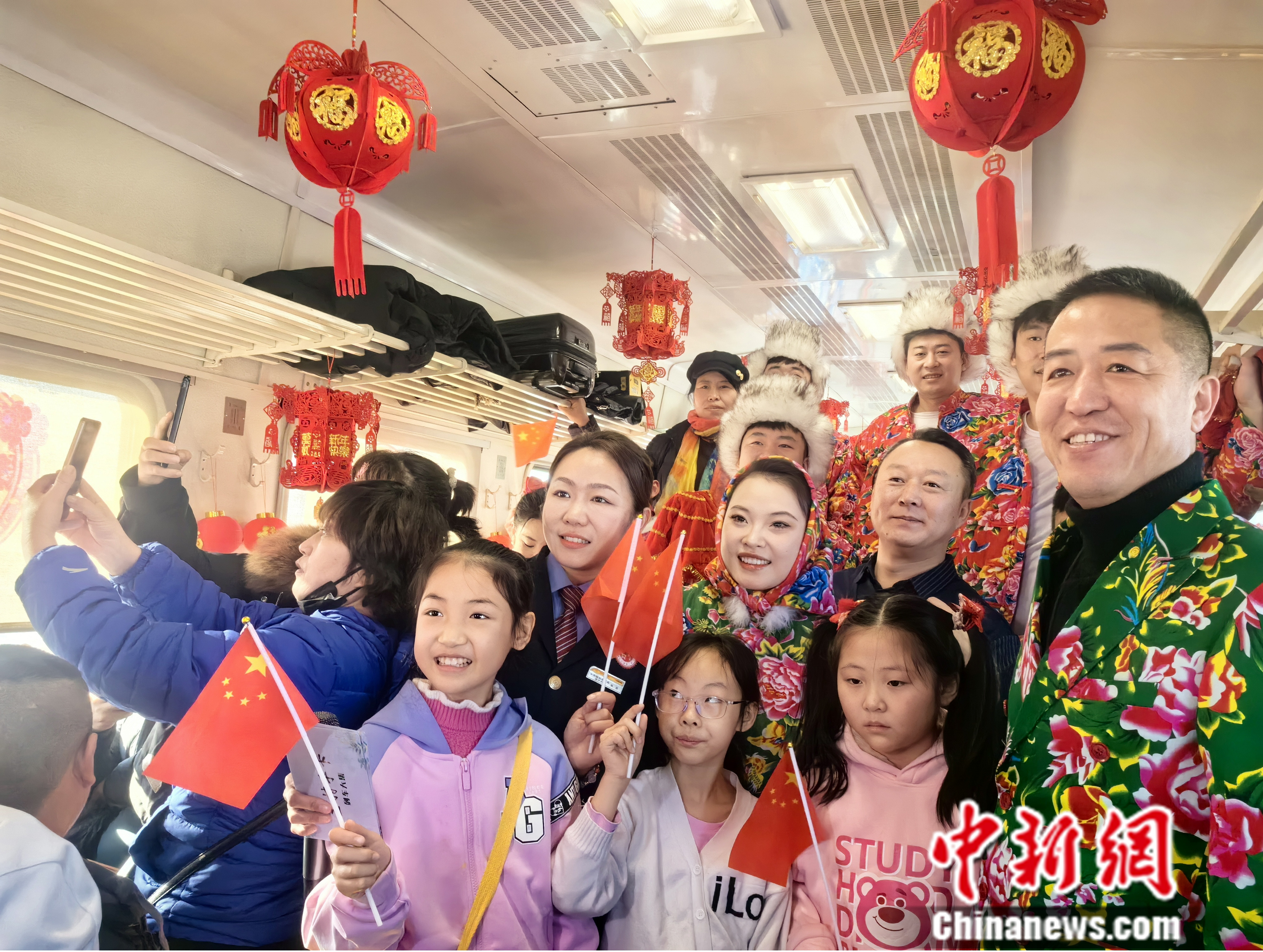 在山東,春節(jié)前,山東“黃河大集”也登陸了山東環(huán)線列車。國(guó)鐵濟(jì)南局把富有創(chuàng)意、接地氣的賀年會(huì)產(chǎn)品布展到火車上,在行駛的列車上舉辦多彩的民俗文化活動(dòng),讓春運(yùn)旅客在車廂里趕上了“大集”。
