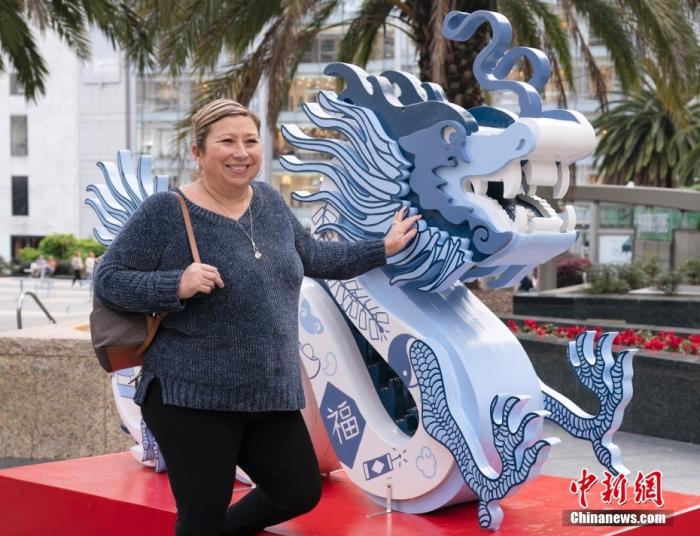 為了迎接中國農歷龍年,美國舊金山在不同地點展出設計風格各異的龍雕像,包括“青花瓷龍”“天玉龍”“平安龍”“彩虹龍”和“金運龍”。美國郵政還發(fā)行了龍年生肖紀念郵票,金色象征繁榮,紅色代表好運。