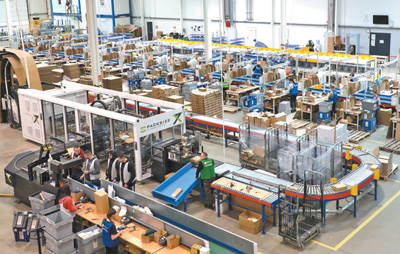 在小城東郊的工業(yè)開發(fā)區(qū),MBB物流公司的智能倉庫里一片忙碌景象:十幾名工人在智能機器人的協(xié)助下,將一件件快遞包裹進行快速貼碼分裝,并通過傳送帶直接送至物流貨車車廂內(nèi)。24小時內(nèi),這些快遞就會被送到波蘭、德國的消費者手中;48小時內(nèi),其他歐盟國家的消費者也能收到各自的商品。因商家需在農(nóng)歷新年假期到來之前集中補貨,MBB物流公司業(yè)務(wù)量猛增,但各處運轉(zhuǎn)都井然有序。