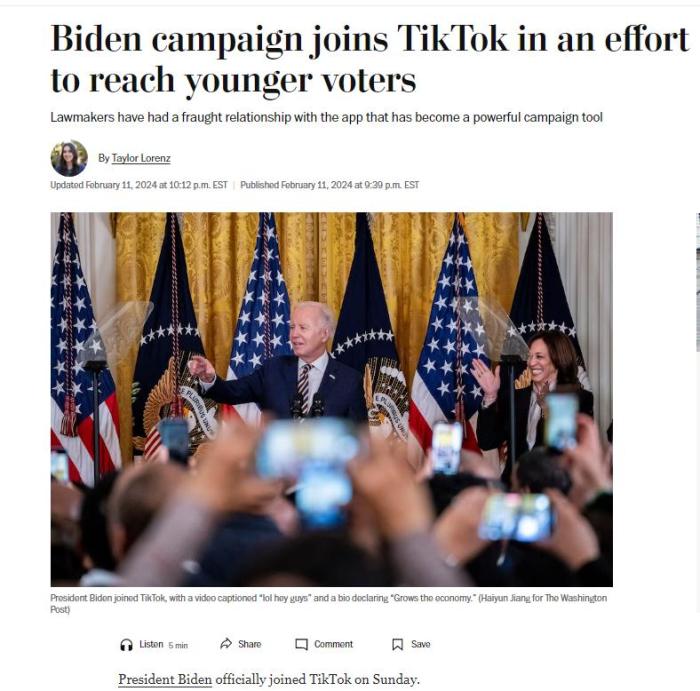中新網(wǎng)2月12日電 綜合報道,當(dāng)?shù)貢r間2月11日,美國總統(tǒng)拜登正式加入了社交平臺TikTok。