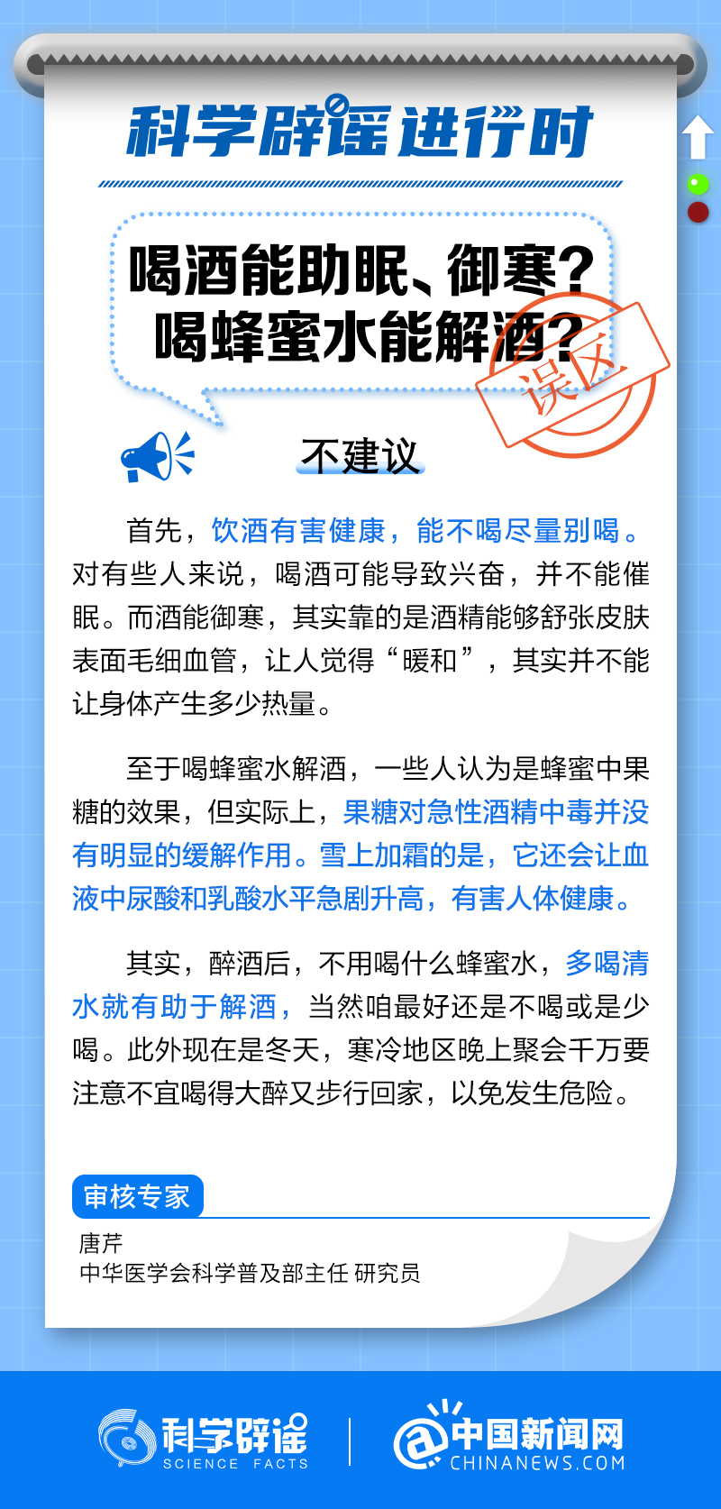 中新網(wǎng)2月13日電 飲酒有害健康,能不喝盡量別喝。對有些人來說,喝酒可能導(dǎo)致興奮,并不能催眠。而酒能御寒,靠的是酒精能夠舒張皮膚表面毛細血管,讓人覺得“暖和”,其實并不能讓身體產(chǎn)生多少熱量。至于喝蜂蜜水解酒,一些人認(rèn)為是蜂蜜中果糖的效果,但實際上,果糖對急性酒精中毒并沒有明顯的緩解作用。它還會讓血液中尿酸和乳酸水平急劇升高,有害人體健康。(來源:@科學(xué)辟謠 中國新聞網(wǎng)微博 )