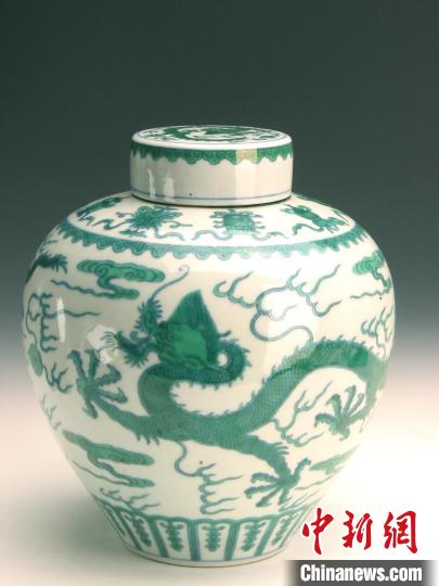 清乾隆款綠釉龍云紋蓋罐。 (沈陽故宮博物院 供圖)