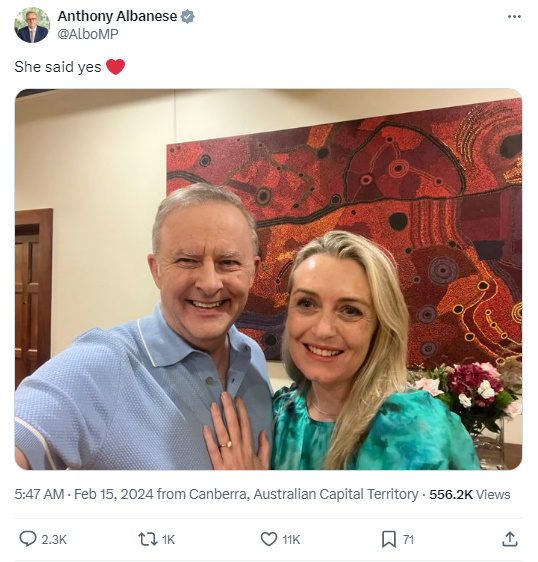 報(bào)道稱(chēng),現(xiàn)年60歲的阿爾巴尼斯,是首位在任期內(nèi)訂婚的澳大利亞總理。
