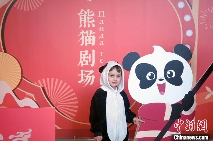 當?shù)貢r間2月17日,“中國影視節(jié)目俄羅斯青少年配音大賽”和新春游園系列活動在莫斯科舉行。圖為活動現(xiàn)場身穿熊貓服裝的俄羅斯小朋友。(主辦方供圖)