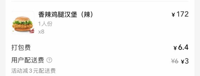 此次,肯德基將宅急送外送費(fèi)降低了3元。因此,和此前相比,消費(fèi)者在該平臺點(diǎn)一單外賣,如果所有食物的打包費(fèi)合計(jì)大于3元,則花的錢更多了。如果所有食物的打包費(fèi)合計(jì)小于3元,則花的錢更少了。同時,外送費(fèi)+打包服務(wù)費(fèi),合計(jì)最多可達(dá)15元。