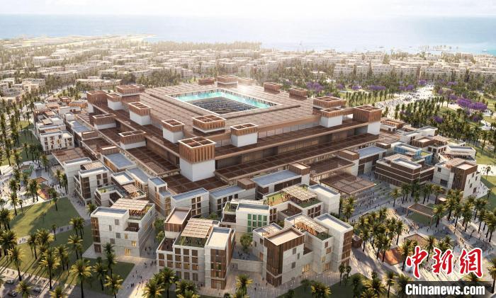圖為2034年沙特世界杯體育場(chǎng)及周邊體育村項(xiàng)目效果圖。(中國鐵建國際集團(tuán) 供圖)