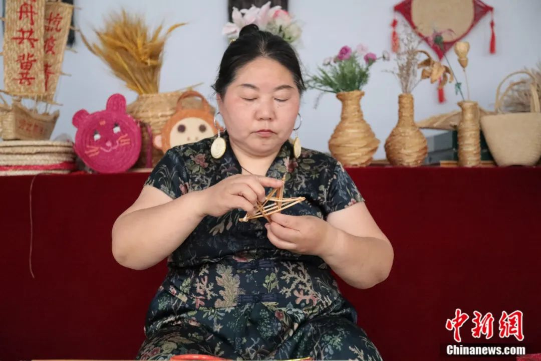 大名草編非遺傳承人王群英正在編制作品。大名縣委宣傳部 供圖