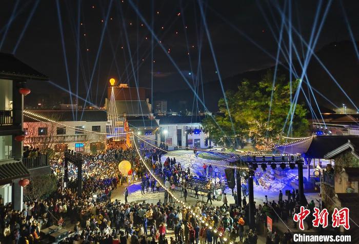賴聲川歷時(shí)多年在家鄉(xiāng)江西會(huì)昌打造的會(huì)昌戲劇小鎮(zhèn)開幕,燈光秀現(xiàn)場(chǎng)人氣爆棚。(受訪者供圖)