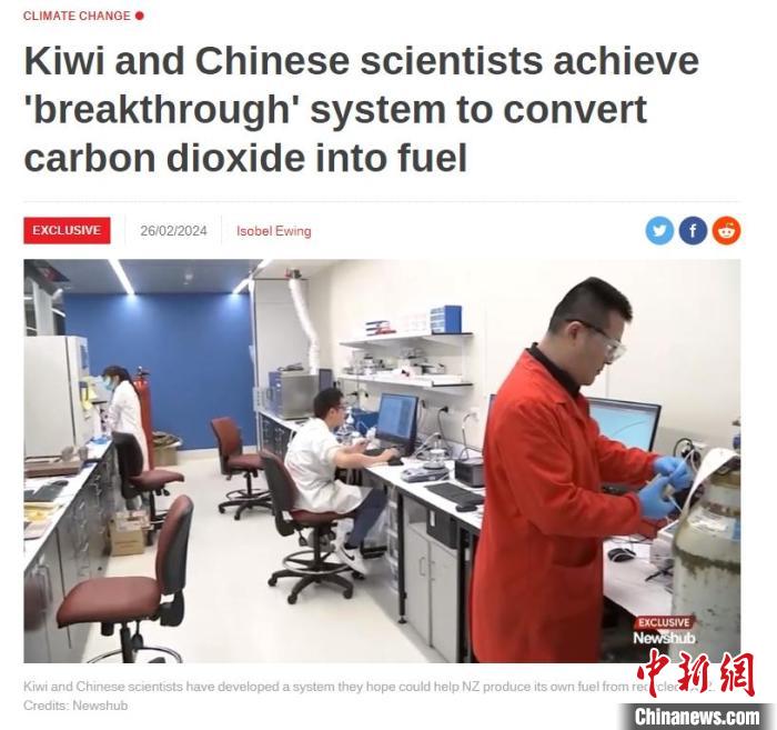 新西蘭和中國科學家正合作開發(fā)一種將二氧化碳轉化為有用物質的系統(tǒng)。圖片來源于新西蘭Newshub網(wǎng)站截圖。
