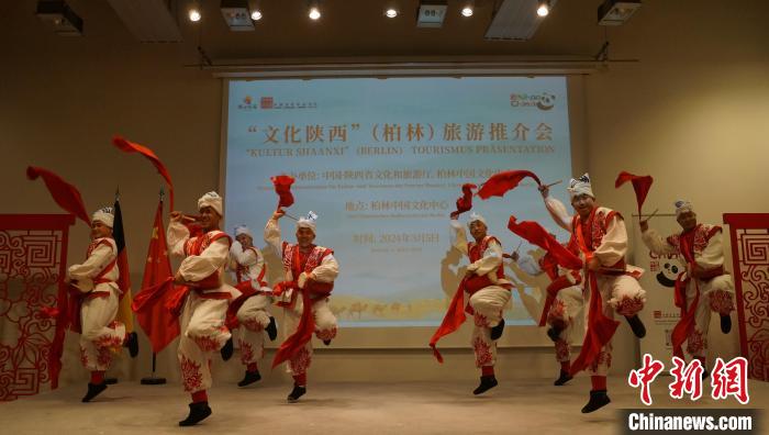 推介會(huì)現(xiàn)場(chǎng)還設(shè)置了陜西特色文創(chuàng)產(chǎn)品展示區(qū),展出農(nóng)民畫、剪紙、石雕、泥塑、棗木雕等非遺產(chǎn)品,讓與會(huì)嘉賓親身體驗(yàn)陜西的民間藝術(shù)和傳統(tǒng)技藝。來(lái)自陜西的藝術(shù)家們?yōu)閬?lái)賓們表演了陜北大秧歌、腰鼓,演唱了《山那邊》《趕牲靈》《淚蛋蛋拋在沙蒿蒿林》《一對(duì)對(duì)鴛鴦水上漂》等極富特色的陜北民歌。推介會(huì)上來(lái)賓們交流探討陜西與德國(guó)在文化旅游領(lǐng)域的合作機(jī)遇和發(fā)展前景,氣氛熱烈。