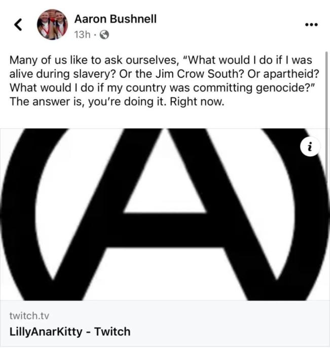2月25日在以色列駐美大使館門前自焚身亡以抗議美以在加沙進行種族滅絕的25歲現(xiàn)役美空軍亞倫·布什內(nèi)爾,以身證道,成了近期震驚世界的事件。關(guān)于這位義士的生平簡介、抗議行動本身和以后的價值、意義,這兩天想必各位也聽了、看了不少了,今天烏鴉來談談這次自焚抗議事件發(fā)生后,也許更加值得細品的一些狀況。