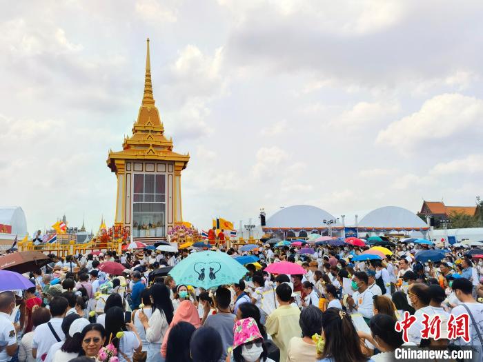 大批泰國(guó)民眾匯聚曼谷皇家田廣場(chǎng)瞻仰參拜釋迦牟尼舍利子。李映民 攝