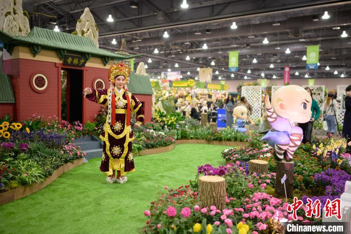 當(dāng)?shù)貢r(shí)間3月2日,一年一度的費(fèi)城花展在美國(guó)賓夕法尼亞州費(fèi)城開(kāi)幕,以“功夫鄭州——花俏嵩山”為主題的鄭州展園當(dāng)天在花展上亮相。圖為鄭州市豫劇院演員袁娜表演豫劇。 Franck Zhou 攝