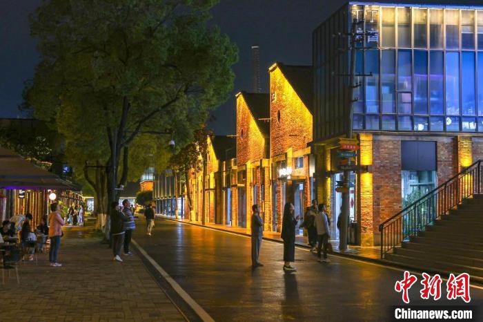 夜色下的江西景德鎮(zhèn)陶溪川文創(chuàng)街區(qū),游客漫步街區(qū)中。(資料圖) 劉力鑫 攝