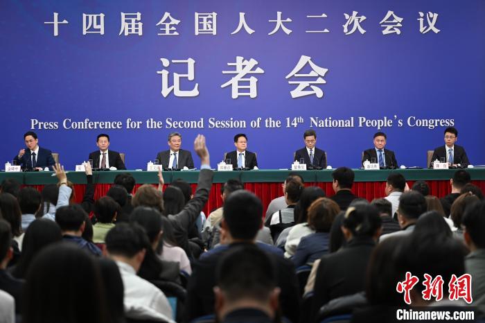 3月6日,十四屆全國(guó)人大二次會(huì)議在北京舉行記者會(huì),國(guó)家發(fā)展和改革委員會(huì)主任鄭柵潔、財(cái)政部部長(zhǎng)藍(lán)佛安、商務(wù)部部長(zhǎng)王文濤、中國(guó)人民銀行行長(zhǎng)潘功勝、中國(guó)證券監(jiān)督管理委員會(huì)主席吳清就發(fā)展改革、財(cái)政預(yù)算、商務(wù)、金融證券等相關(guān)問(wèn)題回答中外記者提問(wèn)。圖為記者舉手提問(wèn)?!≈行律缬浾?何蓬磊 攝