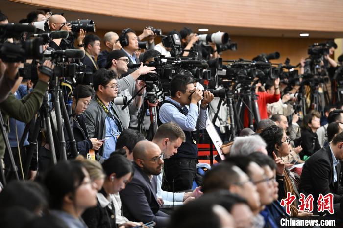 3月6日,十四屆全國(guó)人大二次會(huì)議在北京舉行記者會(huì),國(guó)家發(fā)展和改革委員會(huì)主任鄭柵潔、財(cái)政部部長(zhǎng)藍(lán)佛安、商務(wù)部部長(zhǎng)王文濤、中國(guó)人民銀行行長(zhǎng)潘功勝、中國(guó)證券監(jiān)督管理委員會(huì)主席吳清就發(fā)展改革、財(cái)政預(yù)算、商務(wù)、金融證券等相關(guān)問(wèn)題回答中外記者提問(wèn)。圖為中外記者在現(xiàn)場(chǎng)采訪?!≈行律缬浾?何蓬磊 攝