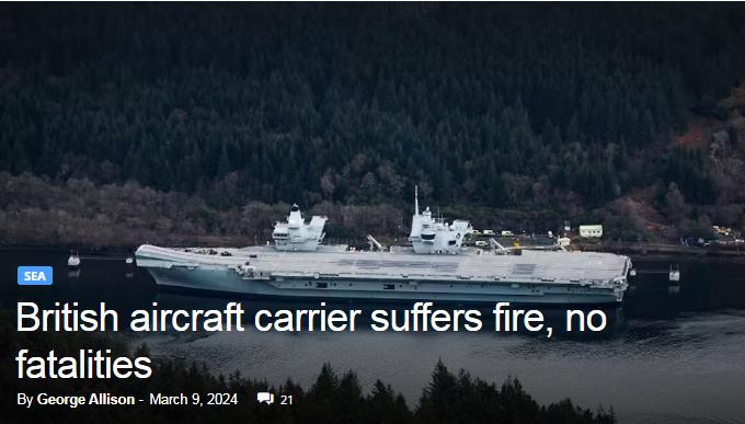 中新網(wǎng)3月10日電 據(jù)英國“UKDefenceJournal”網(wǎng)站、英國《獨立報》等多家英國媒體當?shù)貢r間9日報道,??吭谔K格蘭格倫馬蘭的英國航空母艦“伊麗莎白女王”號發(fā)生火災。目前尚無人員傷亡報告。