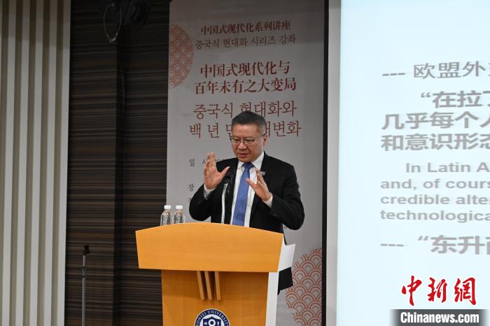 3月13日,復旦大學特聘教授、復旦大學中國研究院院長張維為以“百年未有之大變局與中國式現(xiàn)代化”為主題在韓進行演講。首爾中國文化中心 供圖