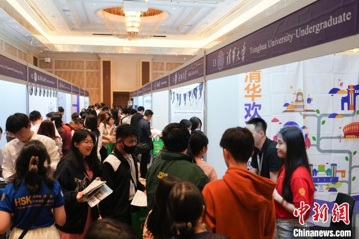3月17日,展會尚未正式開幕,清華大學等高校展臺前已人頭攢動。 中新社記者 張興龍 攝