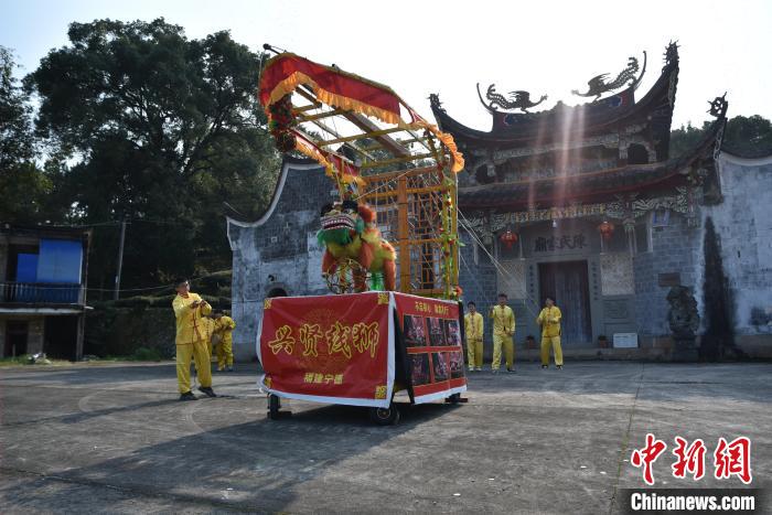 圖為“興賢少年線獅隊”2024年春節(jié)期間走進寧德市蕉城區(qū)洋中鎮(zhèn)芹嶼村表演霍童線獅。褚子強 攝