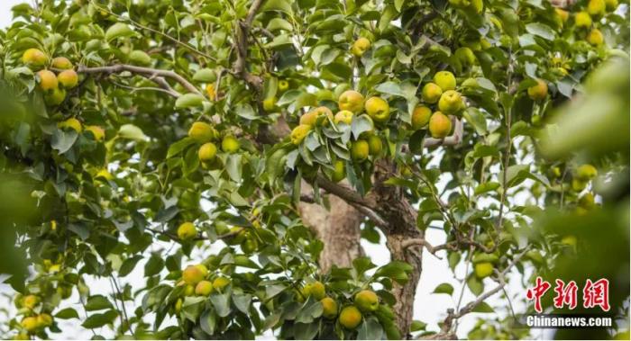 這是一株近百年的梨樹,至今仍然果實累累。姚謙 攝