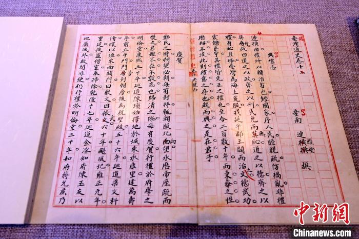 圖為連橫《臺(tái)灣通史》手稿殘卷影印本?!≈行律缬浾?張金川 攝