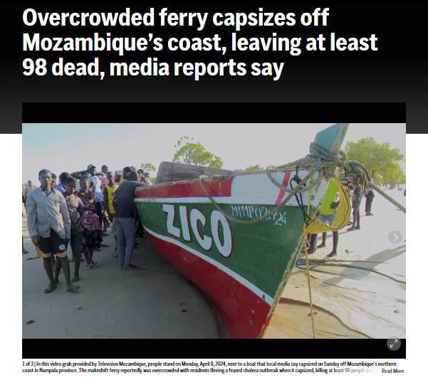 據(jù)報(bào)道,這艘載有約130人的渡輪7日在離開非洲東南部國家海岸前往附近的莫桑比克島后傾覆,目前已有至少11人住院。