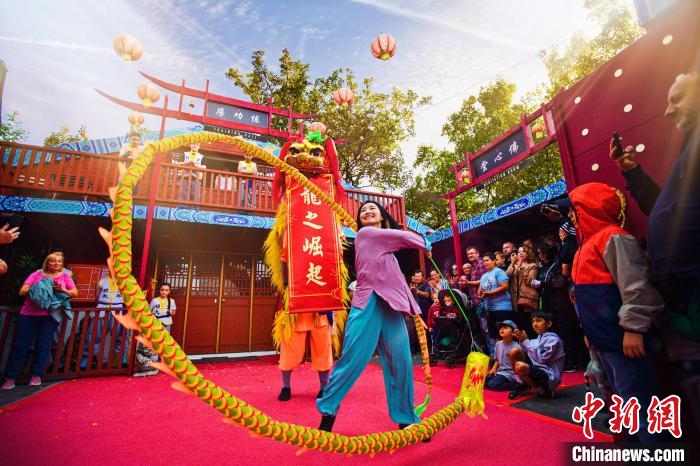 中新社記者4月初走進武館,暗紅色的牌匾、大門、欄桿出現在眼前。在會客廳之后,寬敞的練功房里擺放許多對白龍影響深遠的武者的海報,也有他自己雕刻制作的標語——“龍之崛起(Rise of the Dragon)”。
