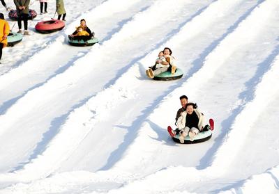 1月2日,游客在臨城縣綠嶺冰雪樂園滑雪圈,享受冰雪樂趣。河北日報記者 趙永輝攝