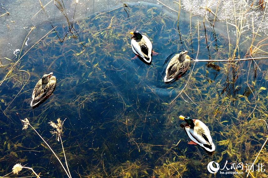 人民網(wǎng)石家莊1月6日電 隆冬時(shí)節(jié),走進(jìn)河北省文安縣趙王新河濕地公園,水面碧波蕩漾,清澈的河水吸引了上千只野鴨在此繁殖棲息。它們時(shí)而翩翩起舞、時(shí)而將頭潛進(jìn)水中覓食,嬉戲玩耍,很是怡然自得。