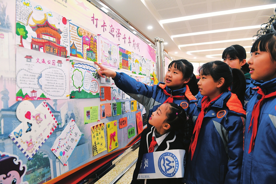 1月10日,省城雙塔北路小學(xué)二年級(jí)師生利用迎澤區(qū)的文旅資源,在學(xué)期末組織開展“府城游”綜合素養(yǎng)大比拼活動(dòng),讓孩子們領(lǐng)略精彩自信的“人文迎澤”,傳承紅色基因,感受歷史文化。(記者王瑞瑞攝)